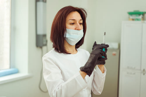 врач со шприцом для кодирования от алкоголизма